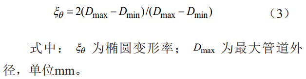 變形管道的橢圓變形率一般要求不能大于0.03,若變形大但未發(fā)生截面破壞則可以不超過(guò)0.06,其計算公式如下: