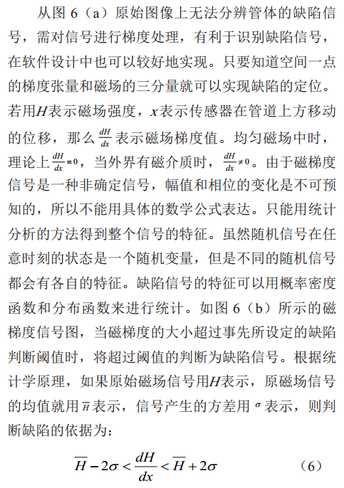 通過(guò)對弱磁檢測和磁梯度張量檢測原理分析,利用統計學(xué)方法,得出缺陷判斷依據,磁梯度值超過(guò)閾值則判斷為缺陷。并對腐蝕類(lèi)缺陷進(jìn)行二維成像處理,將檢測結果更加直觀(guān)的顯示出來(lái)。
