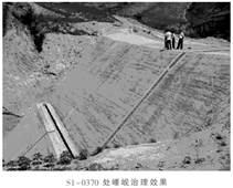 三腳通過(guò)對愉林市愉陽(yáng)區麻黃梁畔坡村的兒處峽觀(guān)分析,部分峽觀(guān)已于2009年春季進(jìn)行了整治,如樁號51-0370處峽觀(guān)2009年采取3:7灰土夯實(shí)處理,現穩定性良好。該處腰觀(guān)地貌和治理現狀見(jiàn)圖1。