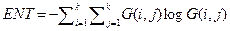 (4)熵(entropy):該參數表示的是某個(gè)圖像的信息量,由于紋理信息是圖像信息的一部分,并且它是一個(gè)隨機性的度量,因此,當共生矩陣中的元素隨機性比較大、并且該矩陣的空間共生矩陣中的元素的值基本相等時(shí),熵較大。該特征參數表征的是圖像中紋理的非均勻程度或者說(shuō)復雜程度。