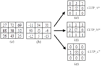 焊縫紋理特征提取涉及邊界清晰度、局部信息細化程度,傳統方法使用二值法LTP、LBP、CLBP 紋理特征描述方法,但紋理描述的精度受到影響,因此,提出了完全局部三值CLTP模式,包含3 種核心算子,即中心描述子、符號描述子和大小描述子,分別用CLTP_C ,CLTP_S , CLTP_M表示,將算子轉化后,最終得到修正的