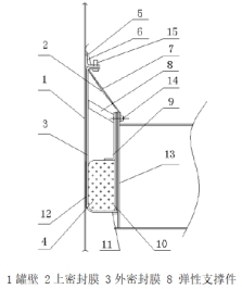 (3)通過(guò)在一次密封外設置外密封膜,將下密封包裹在內,外密封膜兩端與上密封膜兩端密封搭接,使上密封和下密封形成整體密封,即上下密封之間無(wú)油氣存在,從而避免一、二次密封間油氣濃度超標。如圖4所示。