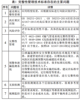 1.2 國內油氣管道標準存在的問(wèn)題