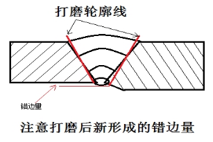 圖2 原焊縫錯邊時(shí)容易出現焊趾裂紋處的打磨示意圖