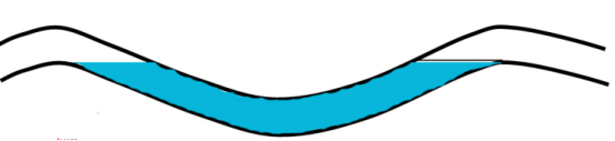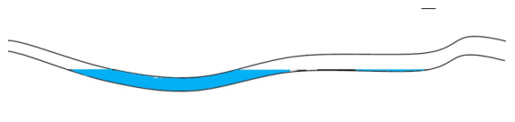 該原油管道首站出站50 322.605 m和50 890.035 m 2處缺陷相距568 m,處在同一工程段。50 322.605 m處內腐蝕分布情況與管道局部走向如圖3所示,50 890.035 m處內腐蝕分布情況與管道局部走向如圖4所示。根據內腐蝕分布情況推斷,此2處的連續管節可能曾存在大量積水,積水應來(lái)自于建設期試壓水。查閱建設施工資料,該管段于2011年5月左右試壓,于2013年1月投產(chǎn),由此推斷積水在該處存在了1年7個(gè)月,內腐蝕應該是在這段時(shí)間內逐漸發(fā)展的。