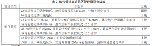 此次高后果區識別根據《油氣輸送管道完整性管理規范》的表2進(jìn)行分級。