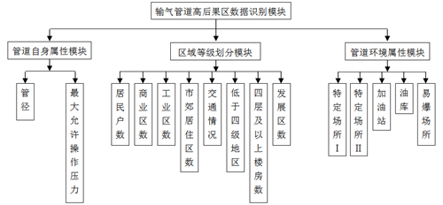 輸氣管道高后果區識別主要依據的是管道地區等級、管徑、壓力、特定場(chǎng)所及易燃易爆場(chǎng)所,管道的管徑與最大允許操作壓力取決于管道本身屬性,地區等級、特定場(chǎng)所及易燃易爆場(chǎng)所取決于管道附近的環(huán)境屬性。據此,建立了高后果區識別模塊。如圖4所示。