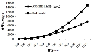 2  不同管徑下簡(jiǎn)化公式與RiskInsight軟件計算的當量泄漏速率比較