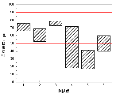 在現場(chǎng)開(kāi)挖調研中,還對防腐層的錨紋深度等進(jìn)行了測試,部分區域的錨紋深度不高,這可能是防腐層剝離強度不高的一個(gè)重要原因。結果如圖4所示。