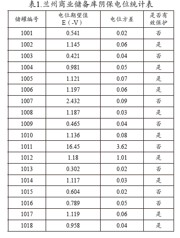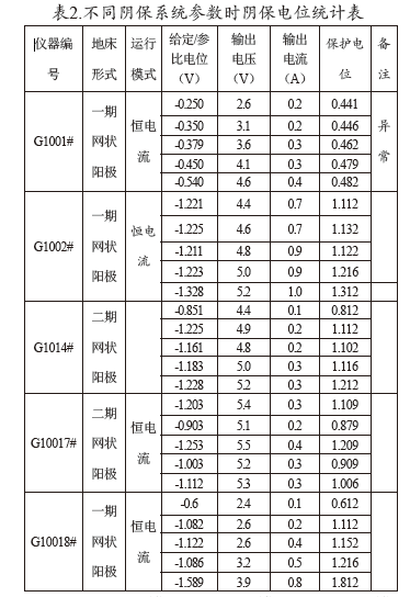 陰保系統參數設置越大,受保護儲罐的保護電位就越高嗎?針對這一問(wèn)題,我們主要考慮的是恒電位儀參數和儲罐保護電位之間的關(guān)系,收集儲備庫陰保參數見(jiàn)表2。