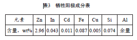 犧牲陽(yáng)極的元素分析表明,犧牲陽(yáng)極成分滿(mǎn)足GB/T 4948-2002的要求。
