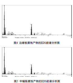(1)通過(guò)掃描電鏡、EDS能譜儀,對儲罐外底板腐蝕產(chǎn)物進(jìn)行分析,結果如圖4、圖5。