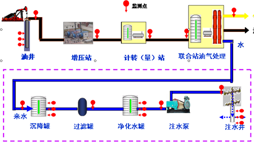 遵循“區域性、代表性、系統性”原則建立油田腐蝕監測網(wǎng)。在油田區塊設置腐蝕監測點(diǎn),實(shí)現對油田區塊管道腐蝕程度的長(cháng)期、全面監測;對油田主要開(kāi)采層位進(jìn)行原油集輸流程全過(guò)程監測,實(shí)現管道的動(dòng)態(tài)腐蝕檢測(見(jiàn)圖4)。