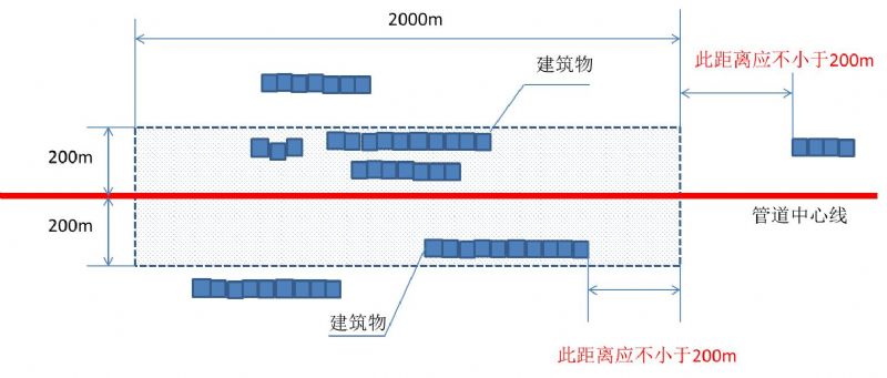 國家強制標準GB 32167 《油氣輸送管道完 整性管理規范》第6.1.2.2條規定: “識別高后果區時(shí),高后果區邊界設 定為距離最近一幢建筑物外邊緣200 m!北緱l款在具體實(shí)施時(shí),如何具 體操作,在此進(jìn)行釋疑。