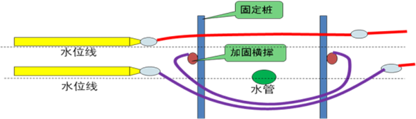 在4根定位樁之間安裝2根φ168 mm鋼管作為橫撐,有效隔離牽引纜繩與供水管線(xiàn)(見(jiàn)圖9)。