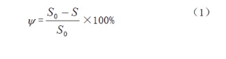 為了進(jìn)一步分析材料的塑性損失,根據公式(1 (式中Ψ為斷面收縮率,S0為實(shí)驗前截面面積,S為試驗后截面面積)計算X80鋼的斷面收縮率,得出:在農田土壤模擬溶液中斷面收縮率為50.8%, 在戈壁土壤模擬溶液中斷面收縮率為40.8%,在沙漠土壤模擬溶液中斷面收縮率為26.7%。