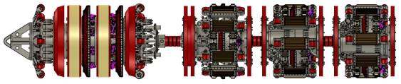 在F1219 mm軸向漏磁檢測研究的基礎上,將軸向和周向勵磁檢測技術(shù)融合,形成了F1219 mm全方位三軸三維超高清漏磁內檢測系統,提高了體積型缺欠的檢出率以及軸向導向的缺欠的檢測能力。新系統由軸向勵磁、軸向前組探頭、后組探頭、周向勵磁和周向探頭等組成,其對管道母材的缺陷探測精度可達3%。