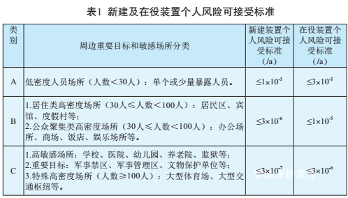 國家安監總局在對發(fā)達國家土地安全規劃、安全距離確定方法進(jìn)行廣泛調研和分析的基礎上,結合我國國情,于2014年4月22日出臺了《危險化學(xué)品生產(chǎn)、儲存裝置個(gè)人可接受風(fēng)險標準和社會(huì )可接受風(fēng)險標準》 [9],見(jiàn)表1。此標準針對的是;袠I(yè),但由于管道輸送的介質(zhì)是石油、天然氣,屬于;,作者認為可以參考使用。