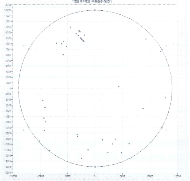 2016年2月26日進(jìn)行了聲發(fā)射檢測,聲發(fā)射檢測液位宜在最高操作液位的85%~100%之間,若遇特殊情況,檢測液位應至少高于傳感器安裝位置1 m以上。檢測前,關(guān)閉罐根閥并保持儲存介質(zhì)靜置2 h以上.檢測時(shí),繼續關(guān)閉罐根閥及其它干擾源,如攪拌器、加熱設施、泵、施工機械等。采用聲發(fā)射檢測儀PAC SAMOS-48,檢測頻率20~100 kHz,檢測過(guò)程中周邊環(huán)境干擾因素滿(mǎn)足檢驗要求。檢測厚,從罐底板的定位事件圖(圖2)上可以看出,罐底中心基本無(wú)定位事件,說(shuō)明底板的腐蝕或定位較低,底板處于穩定狀態(tài)。經(jīng)對噪聲信號濾波處理后,剩余聲發(fā)射事件數量基本消滅,排除罐底產(chǎn)生泄漏缺陷。依據《無(wú)損檢測 常壓金屬儲罐聲發(fā)射檢測及評價(jià)方法》(JB/T 10764-2007)將該罐底板評定為Ⅰ級(分Ⅰ-Ⅴ級,Ⅰ級為最低級別,表示少量腐蝕,不需要維修)。