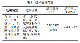 LNG低溫管道注劑式密封技術(shù)是當運行裝置設備發(fā)生流體介質(zhì)泄漏,在不影響正常運行的情況下,迅速消除泄漏的技術(shù)手段。技術(shù)實(shí)施涉及不同的工況條件和復雜泄漏部位,需要針對具體情況,通過(guò)工程力學(xué)、材料科學(xué)、傳遞技術(shù)、流變學(xué)等多學(xué)科知識的綜合運用,才可充分發(fā)揮技術(shù)效能;驹硎怯脢A具包容泄漏點(diǎn)建立密封腔(或利用原有密封腔)以略高于泄漏介質(zhì)系統壓力的推力注入密封劑,達到有效工作密封比壓,泄漏被阻止,從而實(shí)現再密封。技術(shù)特點(diǎn)是適應性強,廣泛適用于不同溫度、壓力條件下的各種流體介質(zhì)泄漏封堵。其技術(shù)適用范圍如表 1所示。