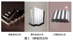 主要研發(fā)了3種密封注劑:橡膠密封注劑,塑料密封注劑,石墨密封注劑,如圖 2所示。