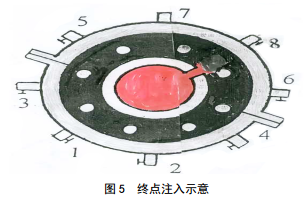 (3)終點(diǎn)注入。順序注入逐漸向主泄漏點(diǎn)靠近,控制推進(jìn)速度,監視注入壓力變化,注意密封劑用量,避免密封劑注入到介質(zhì)系統(圖 5)。