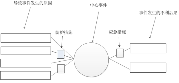例如將蝴蝶結圖的中心事件定義為管道泄漏。中心事件的左側,分析管道泄漏的原因,中心事件的右側,分析管道泄漏的影響后果。