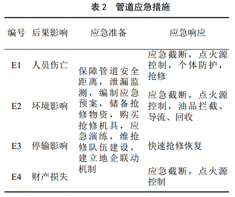 管道應急措施見(jiàn)表 2。
