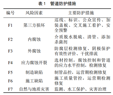 管道防護措施見(jiàn)表 1。