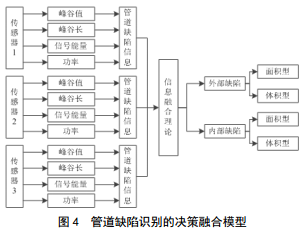 管道缺陷檢測診斷是一個(gè)多源信息融合處理與狀態(tài)識別的過(guò)程,多通道傳感器的數據具有多源性[7]。因此,基于信息融合對管道的缺陷識別進(jìn)行決策融合識別,如圖 4所示。