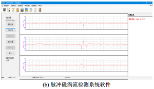 利用式(1)所示的脈沖磁渦流原理,研制了油氣管道脈沖磁渦流探傷系統(PMS-I型),硬件如圖 5(a)所示,軟件界面如圖 5(b)所示。為了驗證 小信號識別與診斷模型的有效性,利用該設備開(kāi)展了室內與現場(chǎng)試驗。