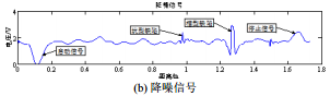 首先對信號用選定的小波基進(jìn)行小波分解,然后按選定的閾值對小波分解系數進(jìn)行處理,最后用閾值 處理后的小波分解系數進(jìn)行小波重構,從而實(shí)現信號降噪。