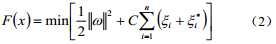 根據多元統計分析理論,可通過(guò)以下目標數極小化確定SVM回歸函數:
