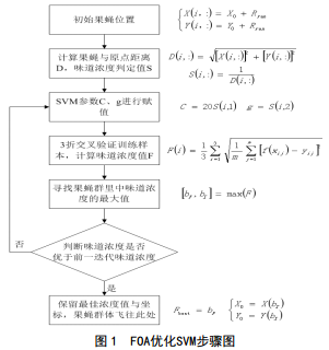 FOA對SVM優(yōu)化的具體步驟,見(jiàn)圖 1所示。