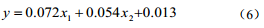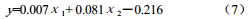 優(yōu)選自變量過(guò)程中,當回歸方程中所有自變量對因變量各自影響顯著(zhù)時(shí),再考慮從其他未選中變量代人方程,循環(huán)往復直至所有自變量?jì)?yōu)選后,求解結束。由逐步回歸法得到的回歸方程為: