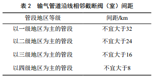 為便于長(cháng)距離管道的維修,降低管道失效后果及減少損失,需在管道干線(xiàn)上每隔一定距離設置截斷閥(室) ,在大中型穿跨越兩端也設置截斷閥(室),截斷閥(室)間距隨地區等級升高而縮小。在緊急情況下可以迅速截斷輸送流程并啟動(dòng)放散程序,有效防止事故擴大[1]。