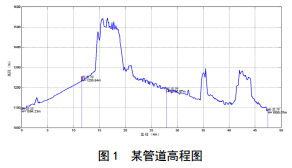 陜西延長(cháng)石油某原油輸送管道于2008年投產(chǎn),全長(cháng)35.34 km,規格φ 219×6 mm,材質(zhì)X65,設計壓力4.0 MPa,沿線(xiàn)共有2座場(chǎng)站、 2座閥室。管道途經(jīng)濕陷性黃土地帶,高程差大、陡坡多、彎頭角度大,清管檢測作業(yè)難度較大,運行近10年內未經(jīng)過(guò)內檢測。管道高程見(jiàn)圖 1。