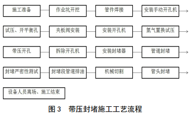 帶壓封堵施工工藝見(jiàn)圖 3。