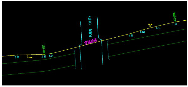 事故發(fā)生天然氣管道泄漏點(diǎn)位于合六支線(xiàn)73.3km處(見(jiàn)圖一),該處管道建設為定向鉆穿越,鳳凰南路段穿越埋深約4.25m(見(jiàn)圖二),事故處管道走向標志清晰,地表平整,與原地貌有異。