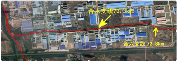 六安市東部新城污水管網(wǎng)土建工程II期項目自2018年6月1日施工以來(lái),先后2次與合六支線(xiàn)天然氣管道發(fā)生交叉作業(yè)情況,位置分別為:合六支線(xiàn)72.8km(安全穿越點(diǎn))和合六支線(xiàn)73.3km(事故泄漏點(diǎn))處。(見(jiàn)圖三)
