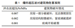天然氣爆炸事故危害主要來(lái)源于爆炸產(chǎn)生的爆炸超壓波,主要危害對象為建筑物,超壓波對建筑物的危害準則如表 1所示。