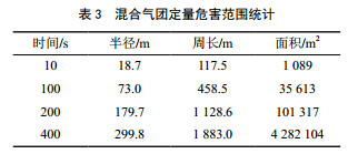 不同時(shí)間點(diǎn)混合氣團定量危害范圍如表 3所示。