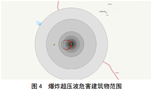 該爆炸事故對建筑物定量危害范圍如表 4所示。
