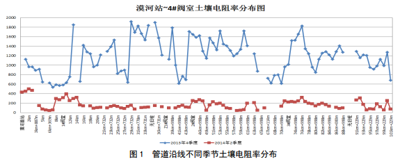 土壤電阻率的變化不僅可以改變陰極保護電流分布,同時(shí)對陰極保護評級準則也有影響(ISO、 GB/T 21447―2008和GB/T 21448―2008有相應說(shuō)明)。因此要根據其變化來(lái)調整陰保站的輸出,根據評級準則進(jìn)行陰極保護評價(jià)與管理。