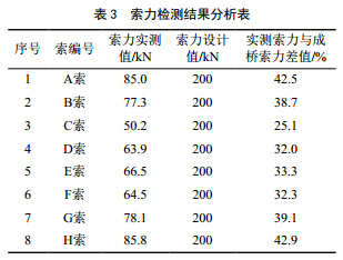 從檢測結果可以看出,子長(cháng)9#跨越各拉索索力實(shí)測值均遠遠小于設計值,不滿(mǎn)足規范及設計要求。