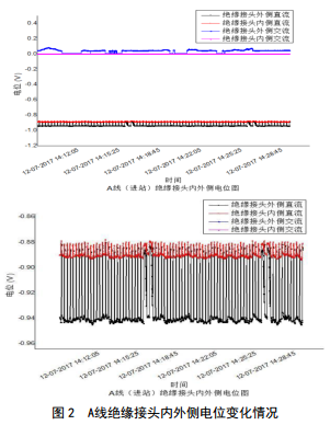(4)絕緣接頭故障。導致A或B線(xiàn)內外側管道電連接,間接接地。