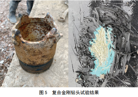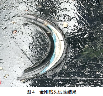 復合金剛鉆頭、 XY-1 型鉆機在管道上方以自重(60~70 kg)鉆孔。試驗結果: