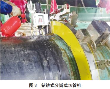 目前,大口徑天然氣管道換管作業(yè)中采用的斷管設備主要有分瓣式切管機、火焰切割機,分瓣式切管機又分為車(chē)削式和鉆銑式(圖 3、圖 4)。