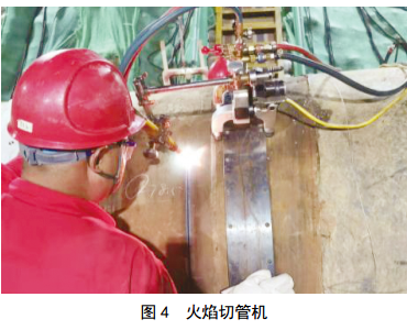 (2)火焰切管。在火焰切割機上安裝遠程遙控裝置,可以遠距離控制切管機,避免站在管道附近的操作人員在管道應力突然釋放時(shí)受傷。另外,目前火焰切割機為單割炬,可將火焰切割機制成雙把切割,并增加軸向切割功能,可同時(shí)進(jìn)行抽條和斷管,使整個(gè)切管過(guò)程更加可控。