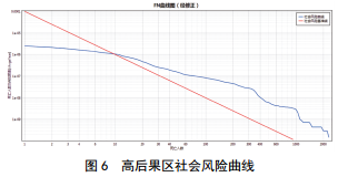 傷亡10人以上的社會(huì )風(fēng)險處于不可接受區域內,傷亡100人以上的社會(huì )風(fēng)險概率為1E-7.2/a,大于社會(huì ) 風(fēng)險概率1E-8/a的要求,如圖 6所示。